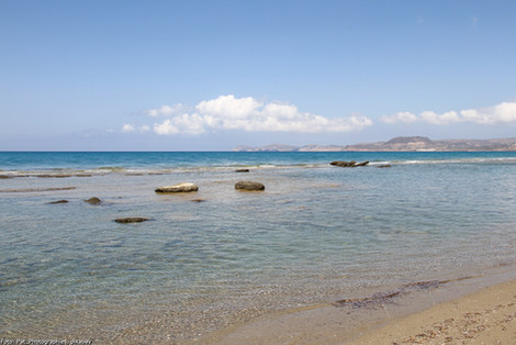 Der Elafonisi Strand liegt weiter abgeschieden rund 76 Kilometer von der Stadt Chania entfernt, wobei es sich bei Elafonisi eigentlich um eine kleine Insel handelt, die zwischen 100 und 200 Meter von der Küste Kretas entfernt liegt. Das Wasser zwischen der Insel Elafonisi und der Küste ist sehr seicht und bei ruhigem Wellengang beziehungsweise Ebbe entsteht hier sogar eine Verbindung zur Insel über einen Sandstreifen, wodurch gleichzeitig eine Lagune entsteht.