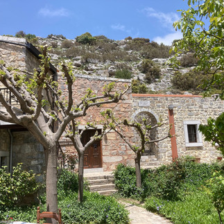 Umgeben von Olivenhainen, Weinbergen und den Ausläufern des Ida-Gebirges ergibt sich außerdem eine tolle Landschaft um das Kloster.